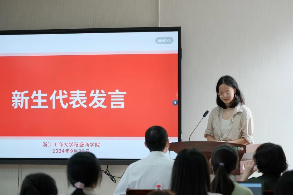随后,两位学生代表分享了自己选择稻盛菁英班的心路历程。“数字商业”微专业学生林东方认为加入菁英班不仅是一个学习的机会,也意味着承担更多的责任,需要对自己的选择和未来的学业负责。“跨境电商+小语种”微专业学生王怡雯认为中国跨境电商市场快速增长,具有很大的发展潜力,而小语种学生在该领域具有优势,鼓励同学们带着勇气和决心一起迈向未来。